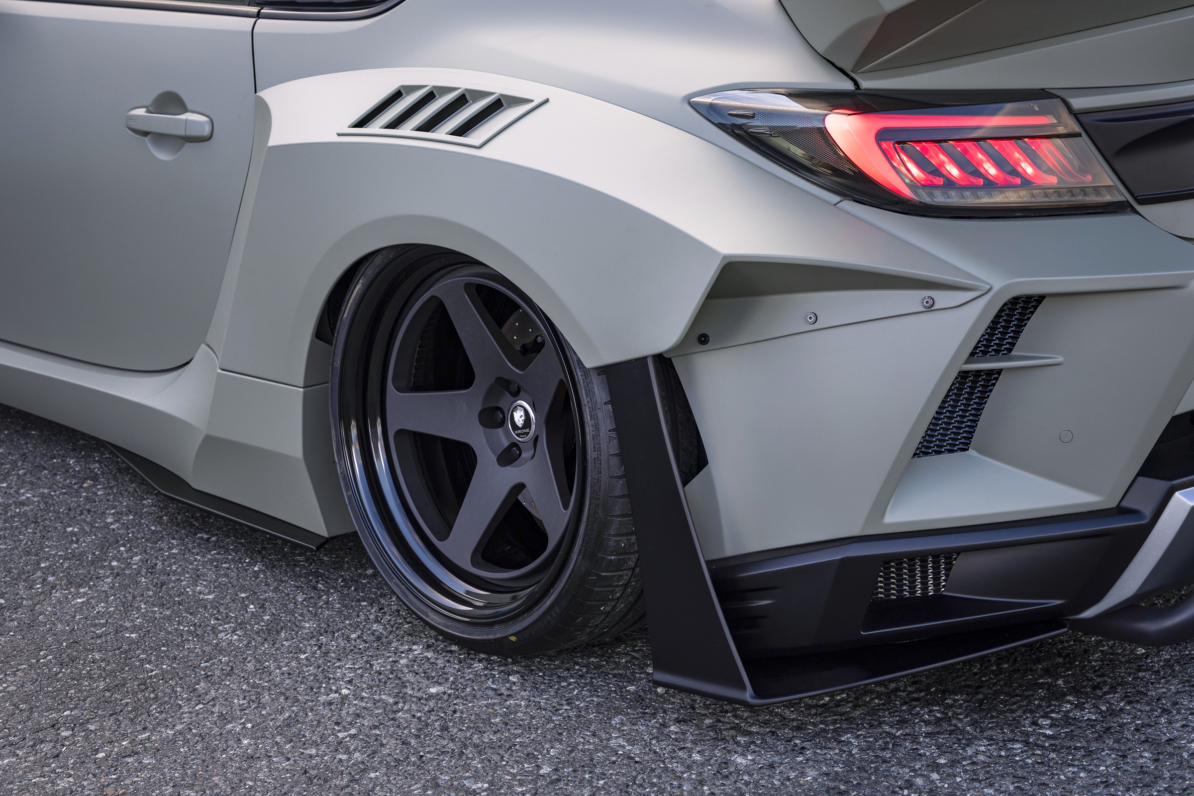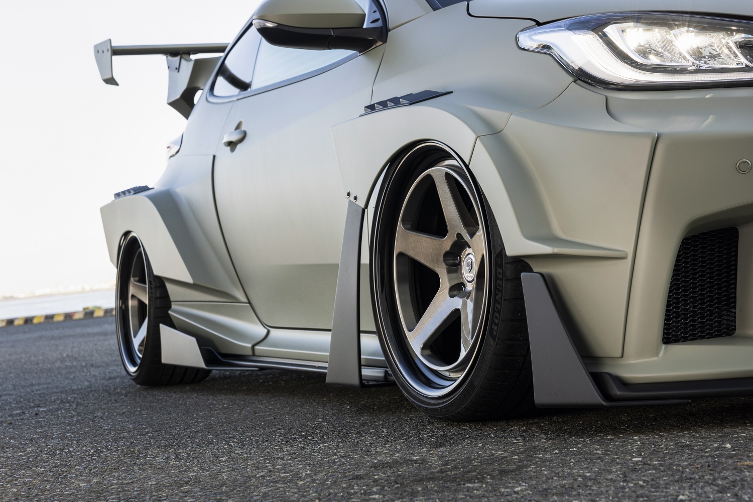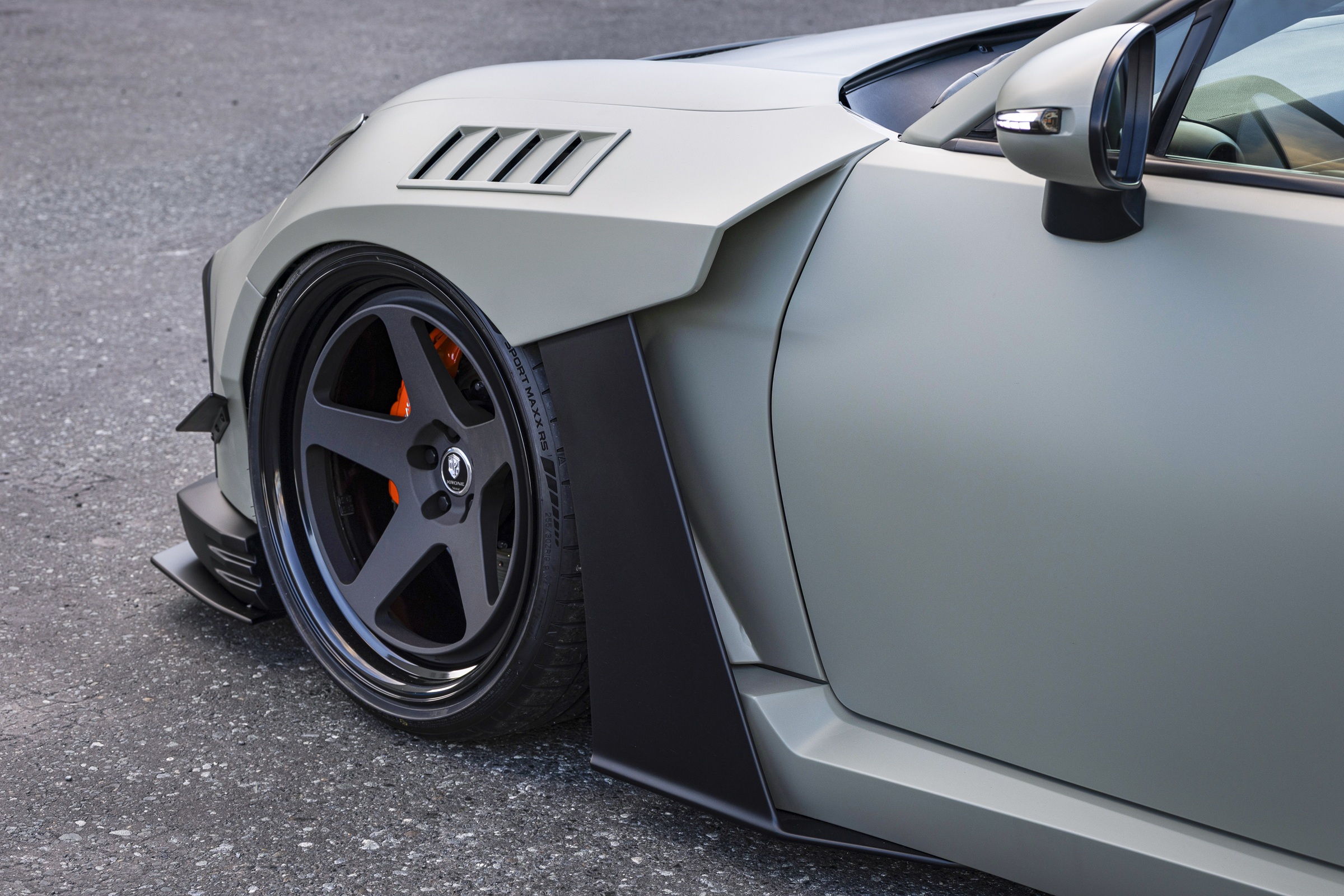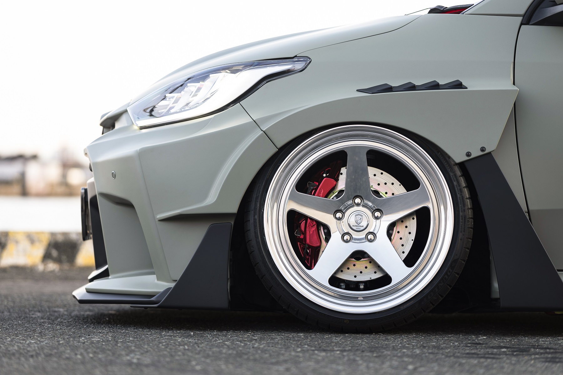 KR05は、5本スポークかつピアスボルトを無くし軽量化、究極ワイド車両に向けたスポーティコンケーブデザインといえる。【GR86ワイドボディ/GRヤリスワイドボディ】などに装着可能。